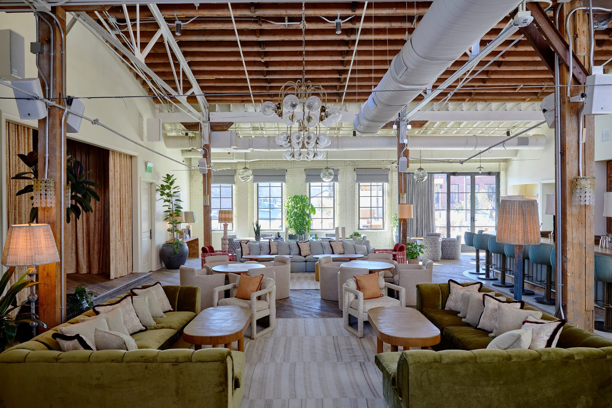 Set in a former hosiery factory, the 110,000 SF members club in the home of country music contains a full gym and wellness space, live music performance space, cinema, members club dining, and 50 guest rooms.
